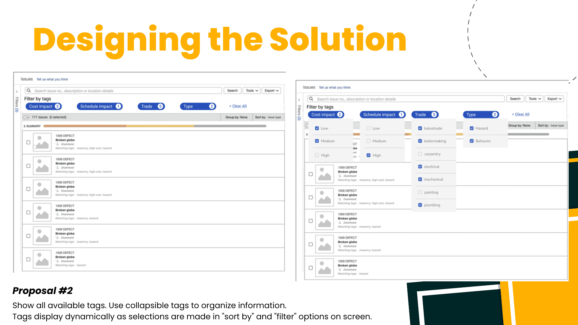 Solution: I proposed implementing in a tagging feature to make issue labeling flexible and fast.