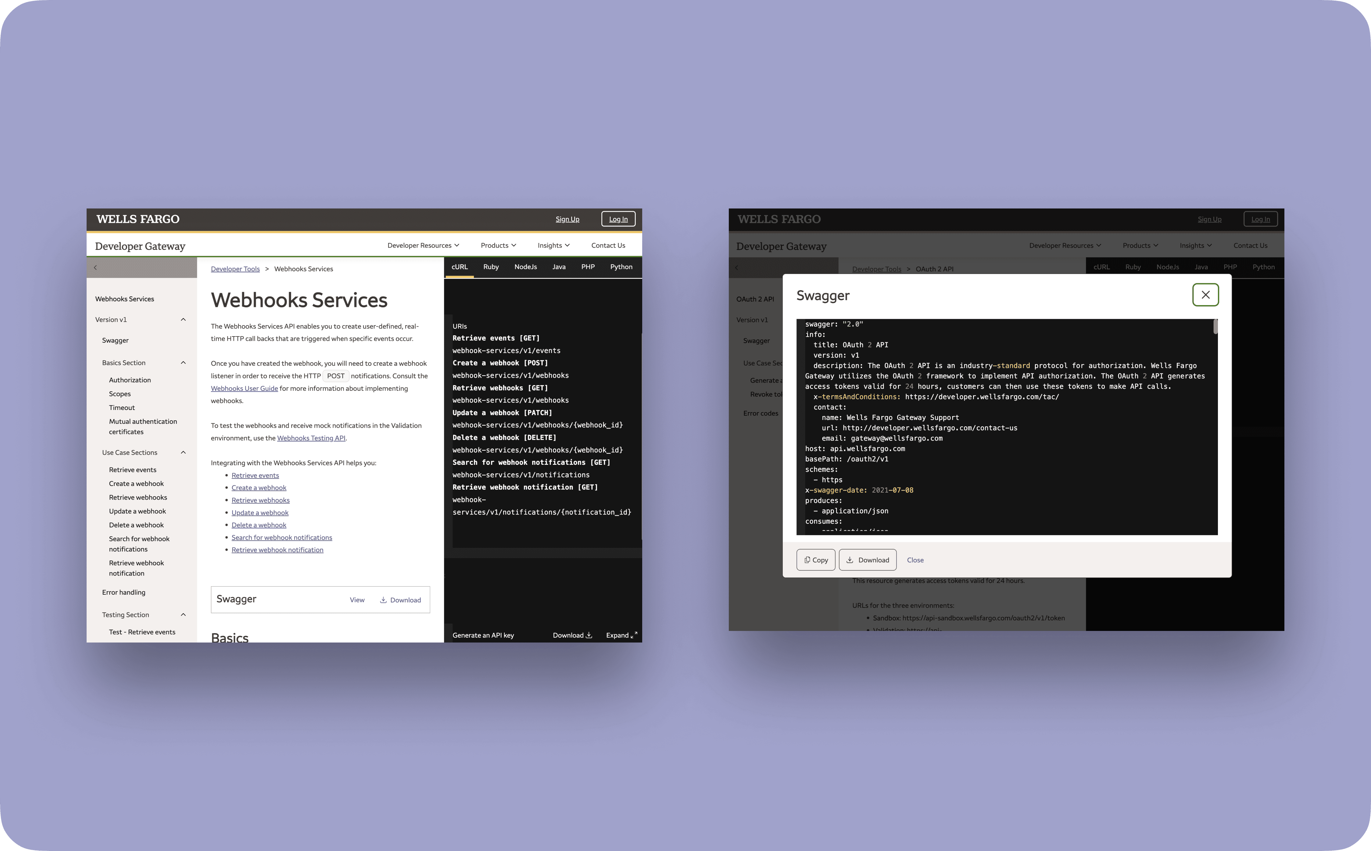 To modernize Developer Gateway with a responsive redesign, improve API discoverability, and enhance testing capabilities, aligning the experience with Wells Fargo's branding.